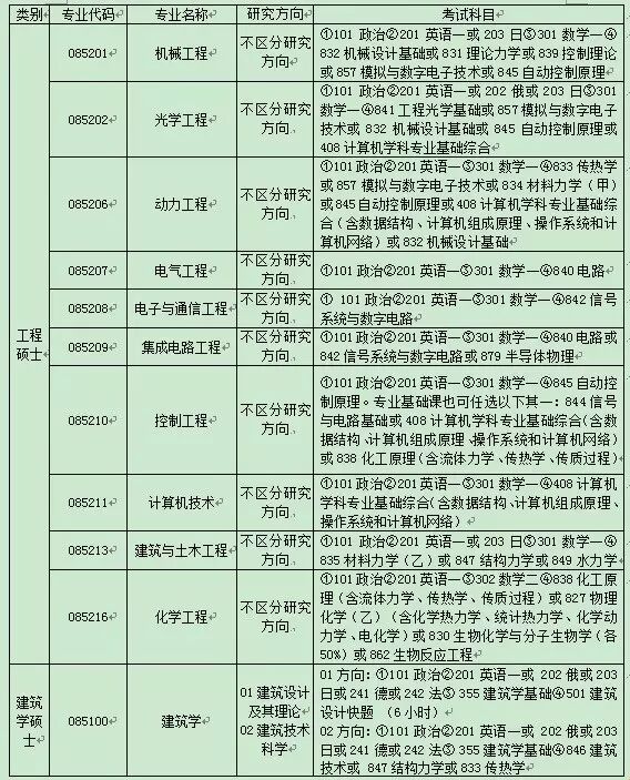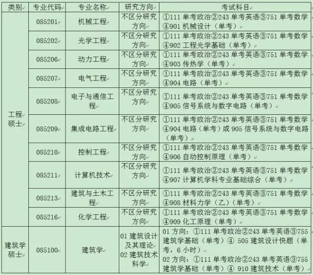 2018年拟在机械工程、光学工程、动力工程、电气工程、电子与通信工程、集成电路工程、控制工程、计算机技术、建筑与土木工程、化学工程等10个工程硕士专业领域和建筑学硕士、工程管理硕士专业类别招收非全日制专业学位研究生。